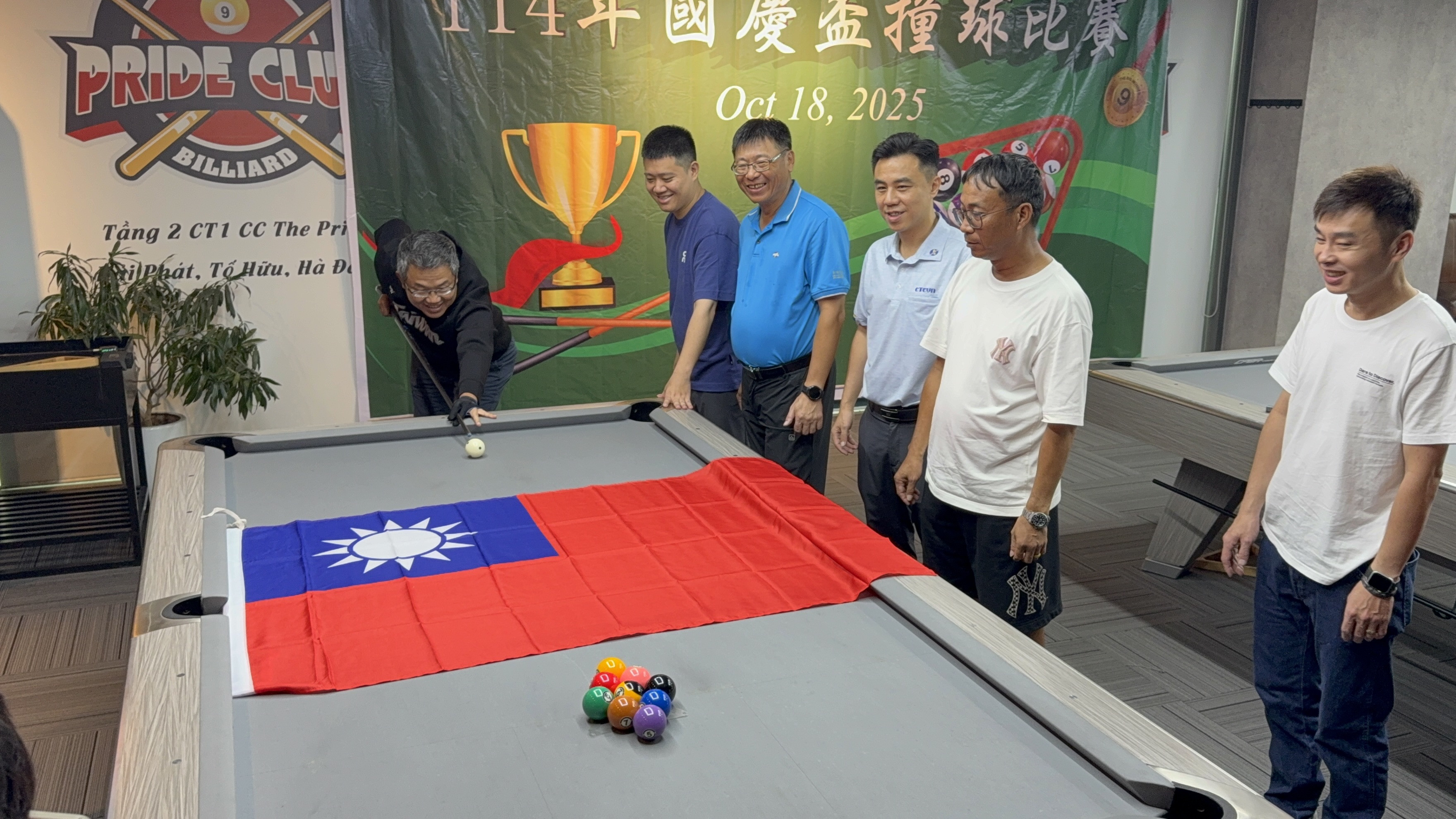 越南臺灣商會聯合總會北寧分會10月18日在河內Pride Billiard Club舉辦「114年國慶盃撞球比賽」,邀請駐越南代表處大使劉世忠擔任開球嘉賓,包括政治組秘書顏銘男、行政組秘書劉祐齊、彭莘穎、越南臺商總會監事長兼球隊創辦人黃雍正、北寧分會會長林軒節、河內分會會長羅世良、北寧商會撞球隊隊員及越南北部地區臺商朋友們齊聚一堂,共同歡慶雙十國慶。