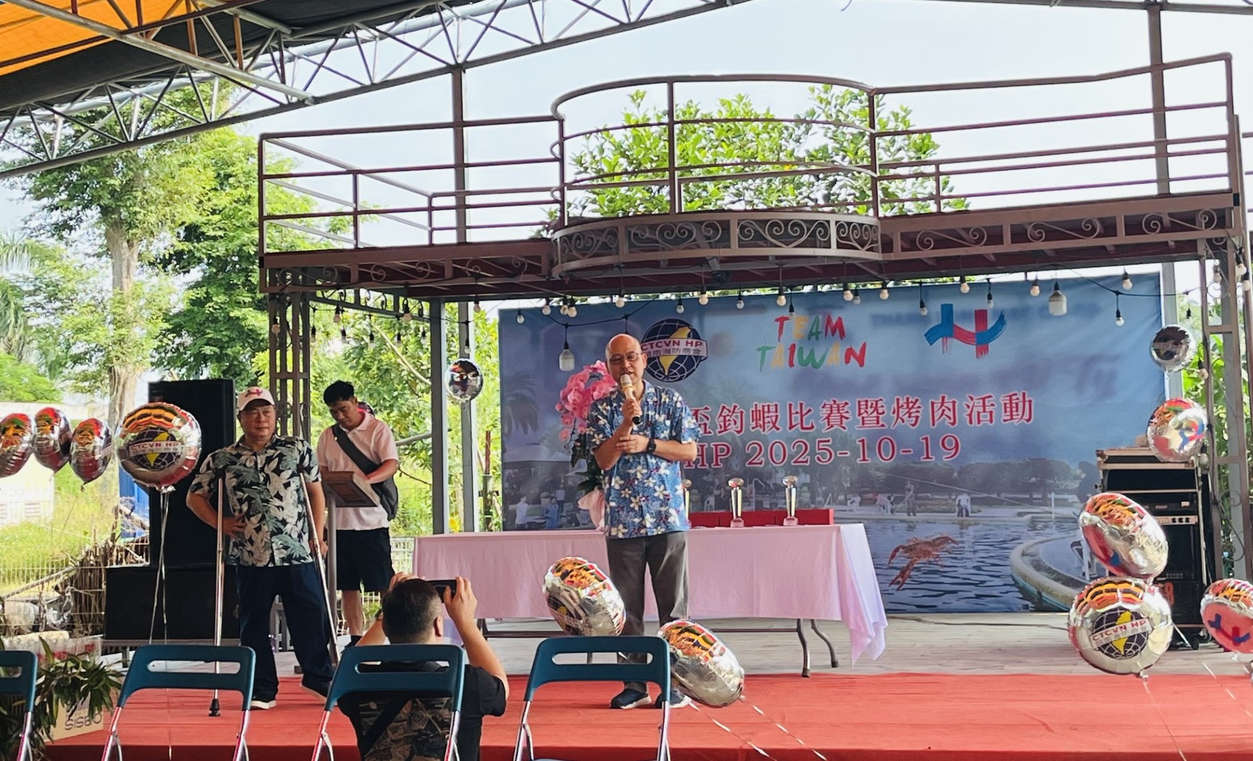 越南臺灣商會聯合總會海防分會10月19日舉辦「114年國慶盃釣蝦比賽暨烤活動」,由會長王坤生主持,包括僑務諮詢委員沈憲煜、僑務顧問金國孝、陳威銘,商會理監事與會員近200人參加。駐處公使林易民偕領務組組長昌建明、秘書施宇真、梁聖芮、經濟組組長丁偉、秘書劉行健、行政組秘書劉祐齊、彭莘穎、移民秘書王乙琇及僑務秘書蔡佩珊應邀出席。