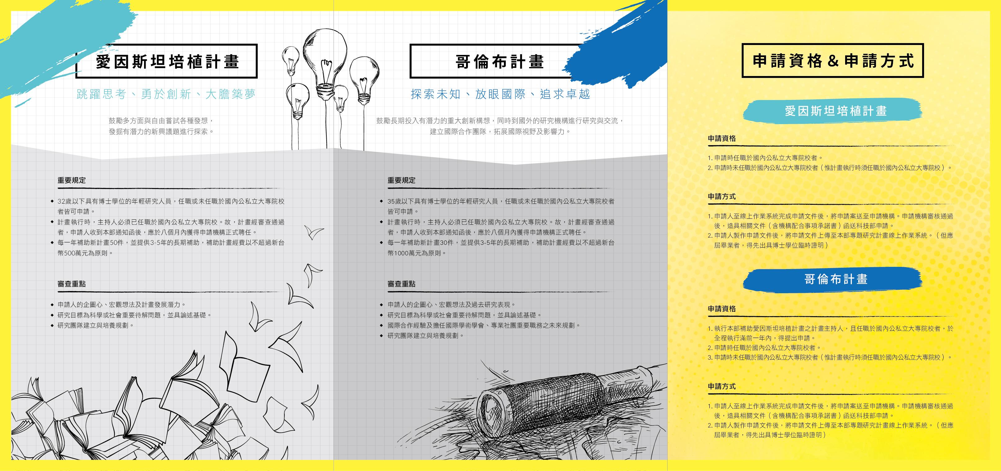 These Directions are established by the Ministry of Science and Technology (MOST) to encourage young research fellows and scholars to engage, on a long-term basis, in research with potential, important, and innovative ideas; to conduct research and exchange with research institutions overseas; and to establish international collaboration teams, in order to broaden international horizon and establish international influence.