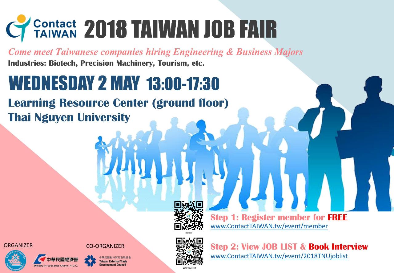 Register:https://www.ContactTAIWAN.tw/event/2018TNUjoblist
