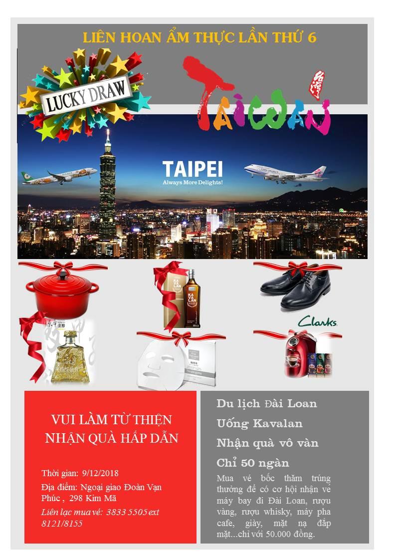 Đặc biệt, năm nay gian hàng của Đài Loan sẽ phát hành Vé Bốc Thăm May Mắn với giá 50.000VND/vé, phần thưởng vô cùng phong phú như: