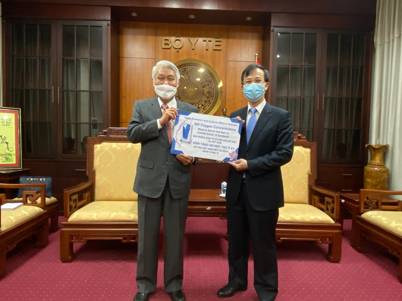 Từ khi đợt dịch thứ tư bùng phát tại Việt Nam vào ngày 27 tháng 4 đến nay, Việt Nam đã có hơn 210.000 ca nhiễm COVID-19, dịch bệnh ảnh hưởng nặng nề tới các vùng kinh tế trọng điểm tại miền Nam như thành phố Hồ Chí Minh, tỉnh Bình Dương… Những địa phương này cũng là nơi tập trung nhiều doanh nghiệp Đài Loan, tình trạng các ca nhiễm tăng nhanh gây thiếu hụt nguồn lực y tế địa phương, ảnh hưởng nhiều tới hoạt động sản xuất, đầu tư. Để ủng hộ công tác phòng, chống dịch của Việt Nam, chính phủ Đài Loan đã ủng hộ Việt Nam 300 chiếc máy tạo ô xy. Sáng ngày 10 tháng 8, lễ bàn giao 300 máy tạo ô xy đã diễn ra tại trụ sở Bộ Y tế Việt Nam và do Ông Thạch Thụy Kỳ, trưởng đại diện Văn phòng Kinh tế và Văn hóa Đài Bắc tại Việt Nam trao tặng trực tiếp tới ông Trần Duy Hải, Tổng thư ký Ủy ban Công tác Đài Loan.