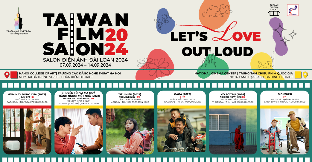 Trải qua 3 kỳ tổ chức thành công rực rỡ từ năm 2020 cho đến nay, chương trình Salon Điện ảnh Đài Loan đã trở thành một điểm hẹn văn hóa thường niên không thể bỏ lỡ của những người yêu nghệ thuật điện ảnh. Trong tháng 9/2024 này Văn phòng Kinh tế và Văn hóa Đài Bắc tại Việt Nam (Taipei Economic and Cultural Office in Vietnam – TECO) sẽ tiếp tục phối hợp cùng Trường Cao đẳng Nghệ thuật Hà Nội (Hanoi College of Art) và Trung tâm Chiếu phim Quốc gia (The National Cinema Center – NCC) để tổ chức chương trình chiếu phim Salon Điện ảnh Đài Loan 2024 – với chùm phim chọn lọc gồm những tác phẩm mới nhất đã đạt nhiều giải thưởng trong nước và quốc tế của các nhà làm phim Đài Loan.