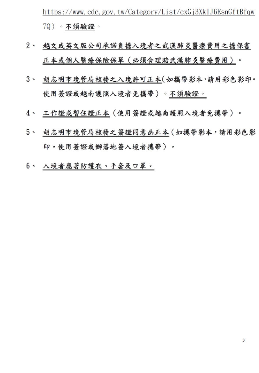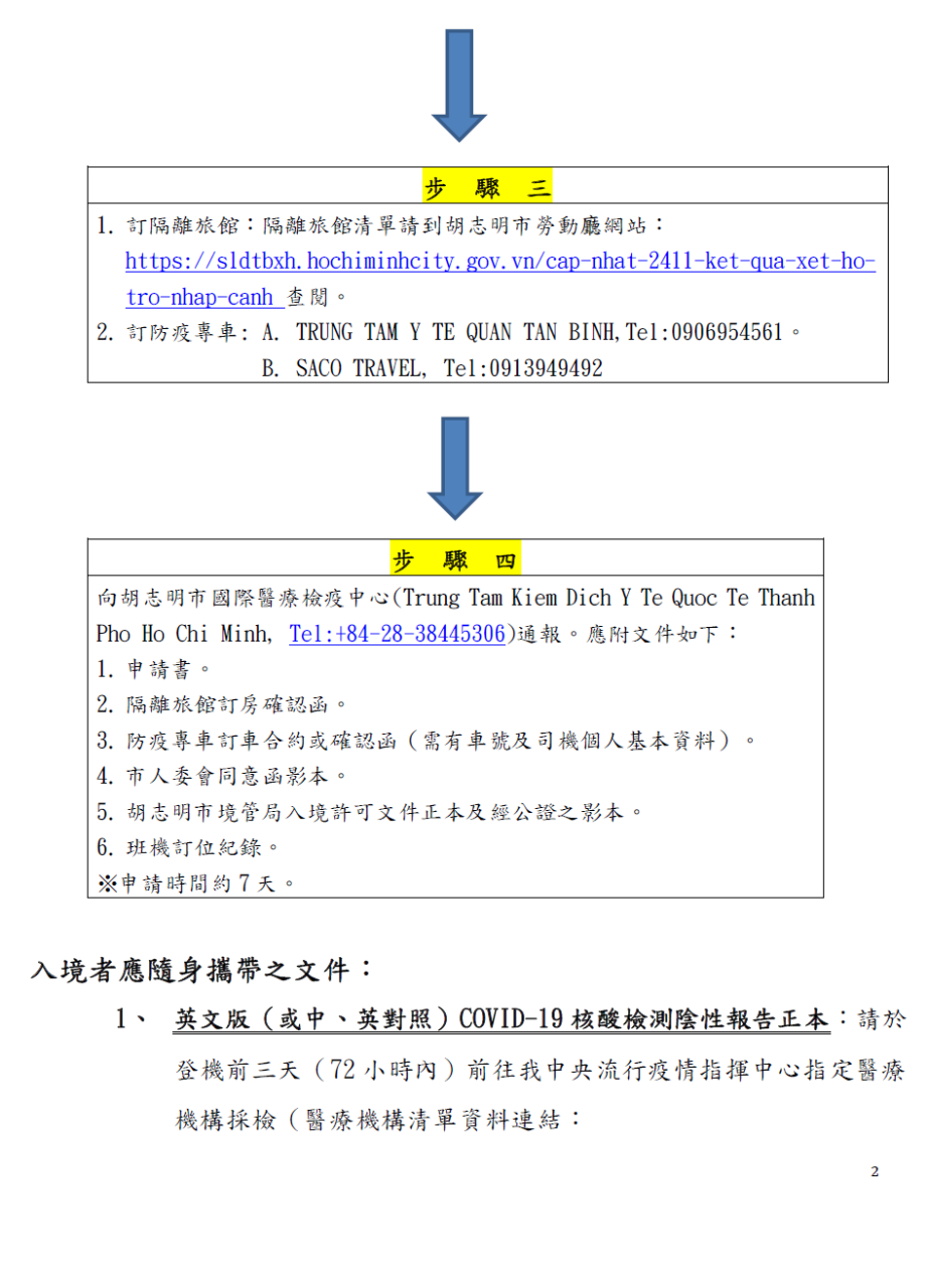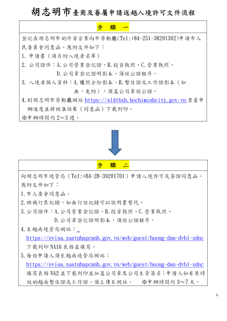 【胡志明市臺商及眷屬申請返越入境許可文件流程】(109年12月1日)