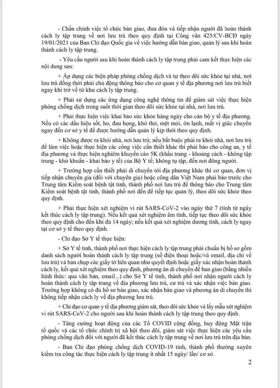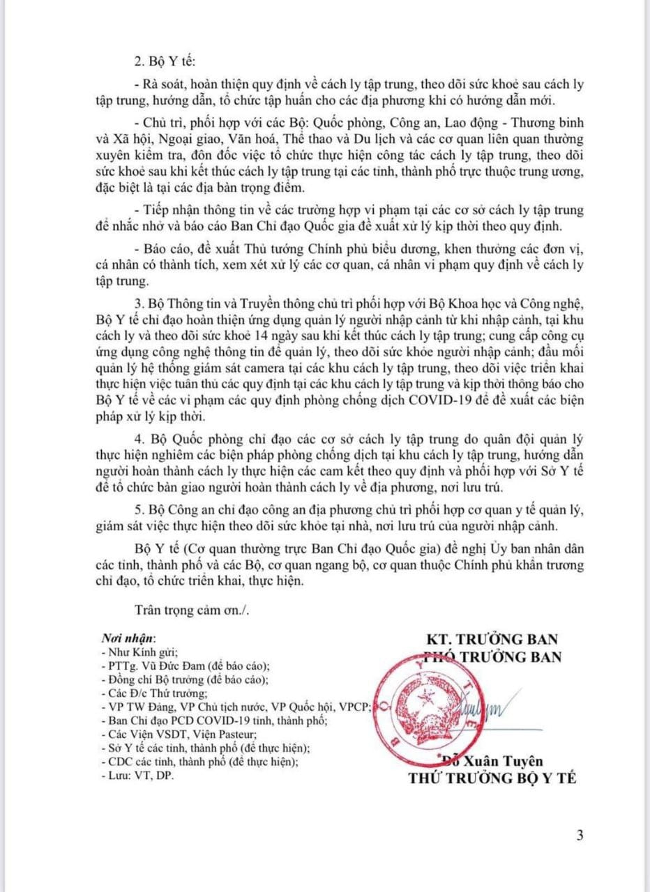 依據同日越南國家防疫指導委員會597/CD-BCD號公文,7天健康監測期間應遵守以下規定: