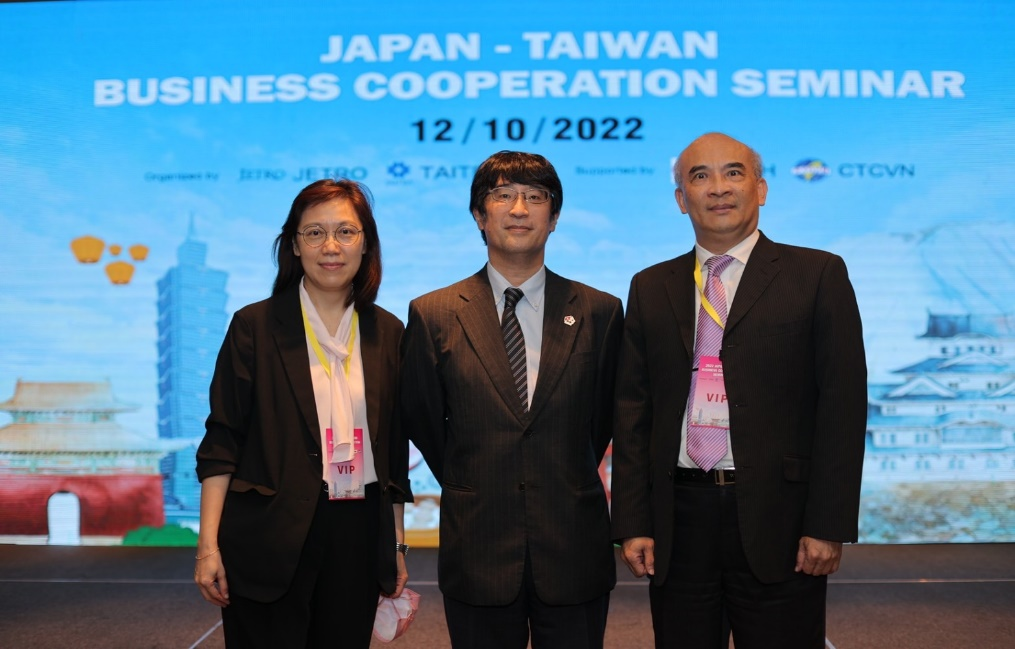 為促進在越南之臺日商交流合作,台灣貿易中心駐胡志明市辦事處與日本貿易振興機構(JETRO)胡志明市事務所於本(111)年10月12日假西貢樂天飯店共同舉辦「2022年越南臺日企業商機研討會」。