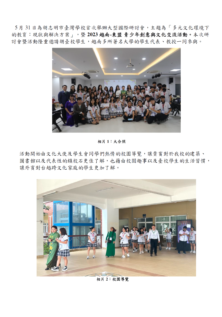胡志明市臺灣學校首次舉辦國際研討會:「多元文化環境下的教育:現狀與解決方案」暨「2023 越... - 駐胡志明市台北經濟文化辦事處 Taipei Economic and Cultural Office in Ho Chi Minh City ::: 跳到主要內容區塊