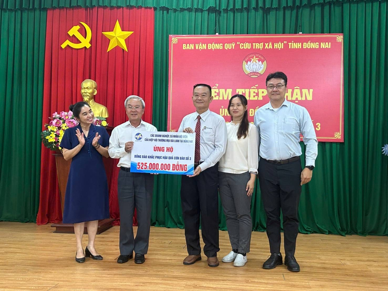 2024年10月11月同奈臺灣商會舉辦捐贈儀式,協助受颱風襲擊之越南北部地區民眾災後重建,早日恢復正常生活。會長田坤長代表同奈臺商會向越南政府及受災人民表達我方誠摯慰問與關懷。該會迄已收到46個公司與愛心人士的捐款,總金額達 5億2500萬越盾。