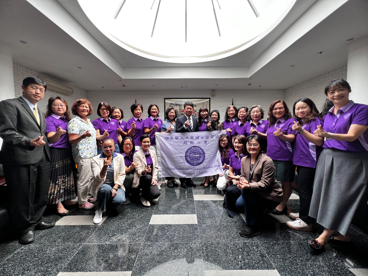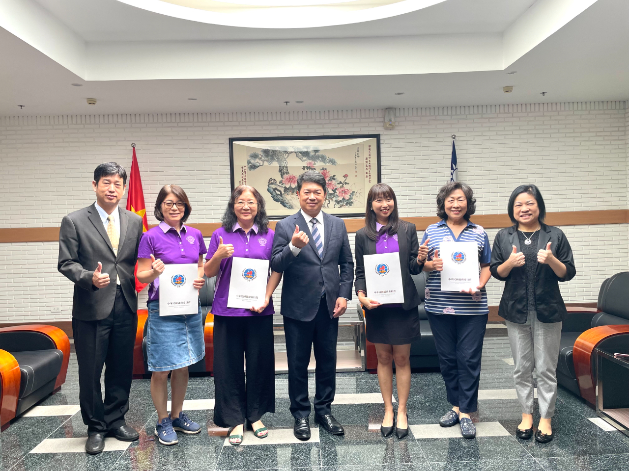 越南世華婦女協會林會長怡伶12月12日偕第九屆新任理監事及執行團隊拜會本處,介紹團隊成員及未來會務目標,韓處長國耀予以接見。