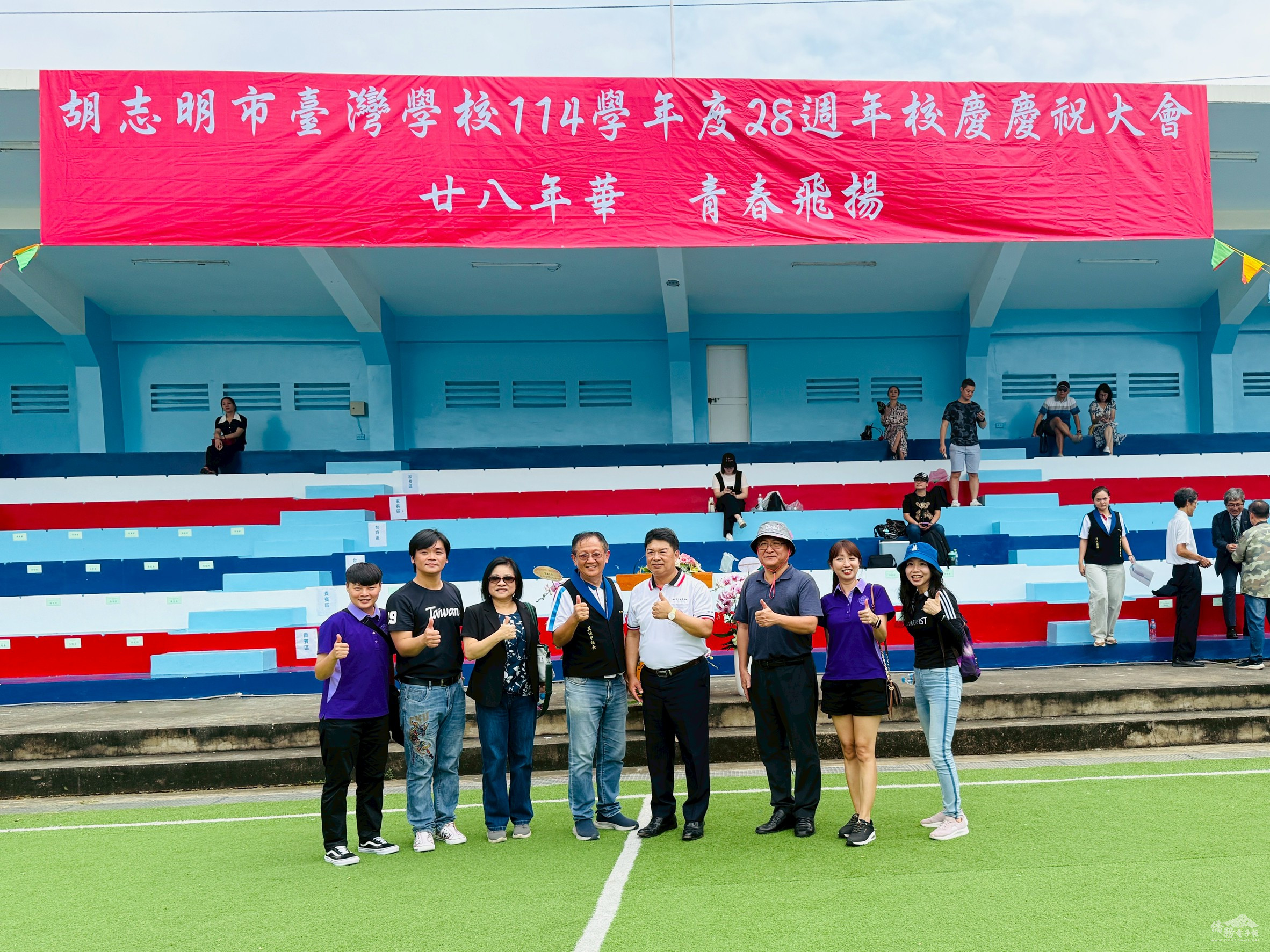 胡志明市臺灣學校校長莫恒中以今年校慶主題「廿八年華、青春飛揚」,以及「教育創新、科技未來、接軌國際」的願景,期許同學們積極提升自身競爭力,努力成為具備國際視野與實力的未來人才。
