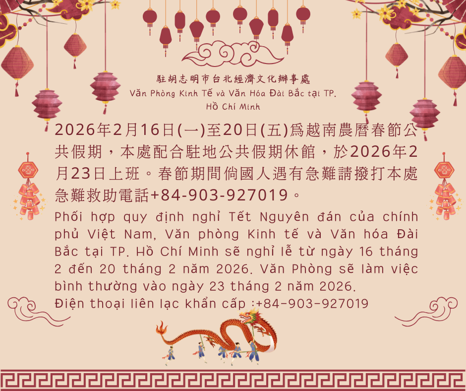 2026年農曆春節本處休館公告 - 駐胡志明市台北經濟文化辦事處 Taipei Economic and Cultural Office in Ho Chi Minh City ::: 跳到主要內容區塊