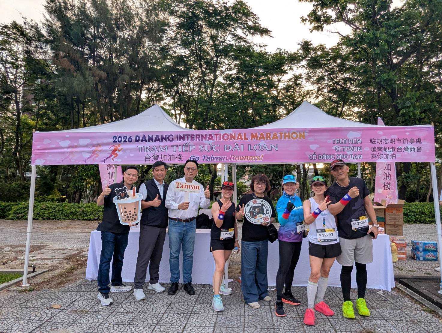 本處與峴港臺灣商會共同合作,於活動當日在中途補給站設立攤位,向沿途跑者加油並宣揚臺灣。擺攤現場懸掛橫幅,上印有”Go Taiwan Runners!”等字樣,大會正式贊助廠商之一,華航越南分公司峴港站之工作團隊也到場友情支持。攤位前,則有臺商越南旺旺有限公司及味丹越南股份有限公司贊助之零食及飲料,免費發送現場民眾,吸引各國跑者及民眾停駐攤位前,氣氛熱烈。