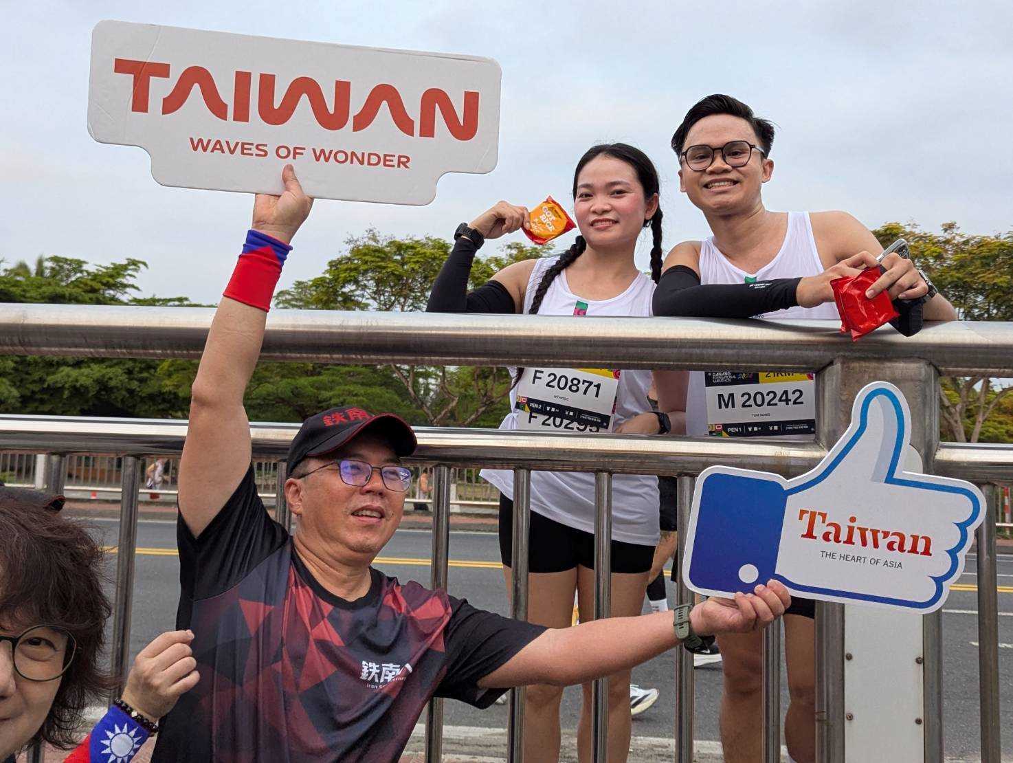 許多來自臺灣的跑者表示,首次在海外遇到我國駐外館處及臺商特地設攤宣傳臺灣,感到十分親切,外國友人也對我方之加油打氣熱情回應。