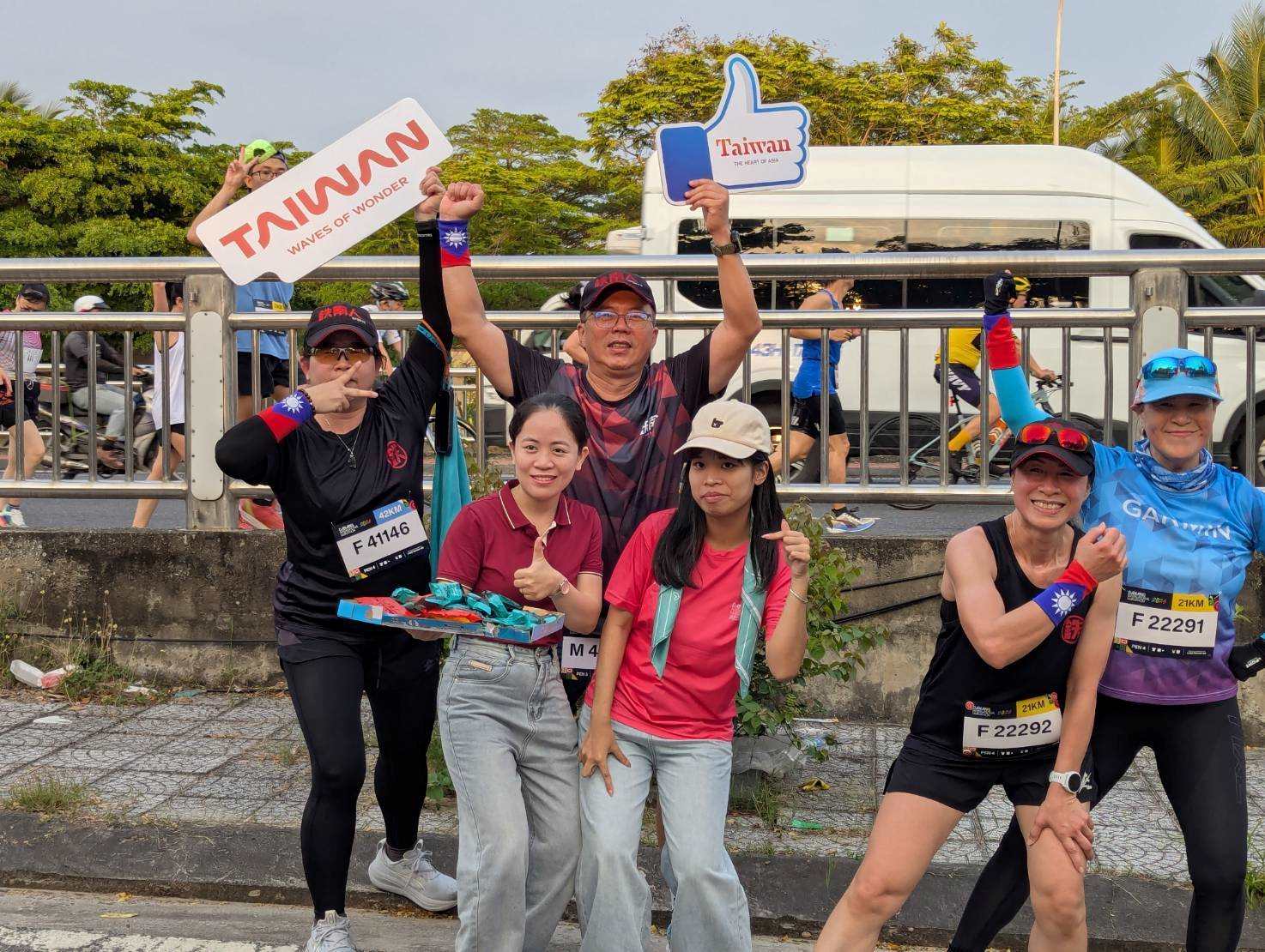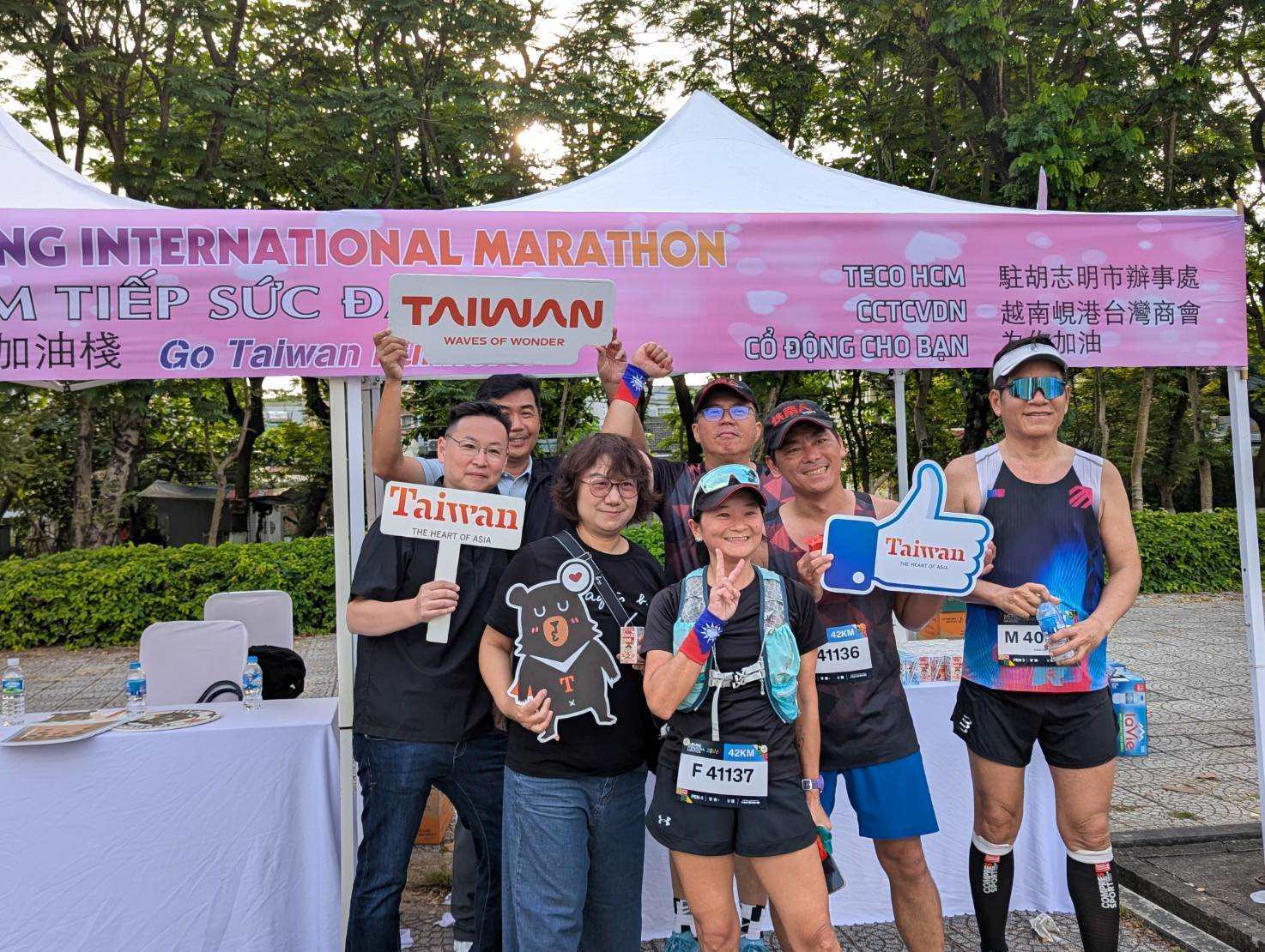 我國參賽者或團體中,以「臺南市鐵南人運動協會」一行約70人人數最多,當日該團成員自發性配帶我國國旗護腕上場路跑,途經臺灣攤位時興奮地紛紛停下拍照合影,並主動向沿途參賽者擊掌加油及發送食品飲料。當日晚間,該運動協會舉辦慶功晚宴,本處人員、僑務委員邱誠財、華航峴港站團隊亦應邀到場致意。