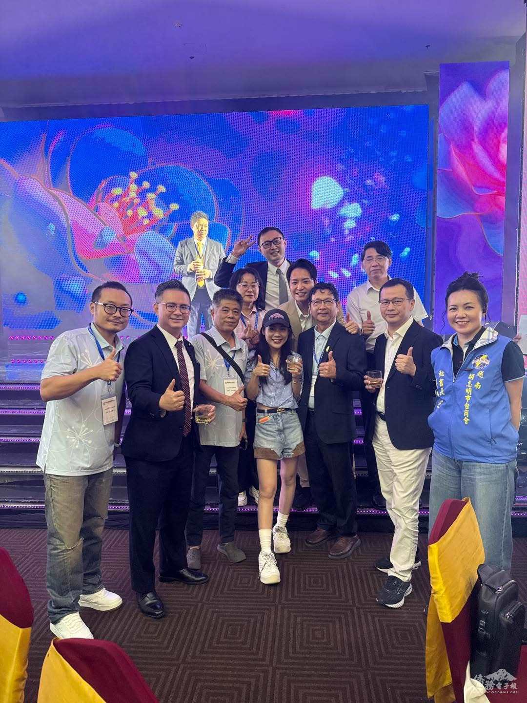 劉大使致詞表示,南越臺商分會一向用心且富創意,此次春酒活動主題鮮明,成功凝聚僑界向心力。劉大使分享自己身穿Team Taiwan帽T,呼應近期棒球熱潮,與現場來賓一同高唱《臺灣尚勇》。他肯定越南臺商展現團結精神,猶如「Team Taiwan」,在海外持續發光發熱。