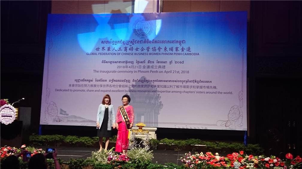 Mr. Tsai Chi Ying took part in the Cambodia branch founding conference of Global Federation of Chinese Business Women and granted to the Chairwoman Mrs. Huang Gui-Yun a congratulatory letter on the behalf of Chairman of Oversea Communities Mr. Wu_Hsin-hsing on the 21st April 2018.
