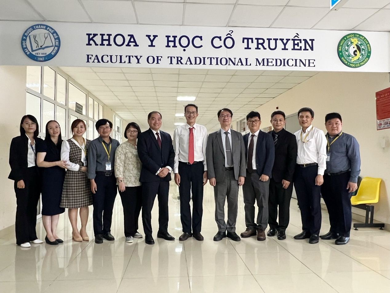 Sáng ngày 5/5/2023 Ông Trần Hòa Hiền (Thứ 6 từ trái sang), Trường phòng Giáo Dục Văn phòng Kinh tế và Văn hóa Đài Bắc tại TPHCM cùng Đoàn Viện nghiên cứu Y học cổ truyền-Bộ Y tế Đài Loan đến thăm và làm việc với Khoa Y học cổ truyền Đại học Y Dược TPHCM
