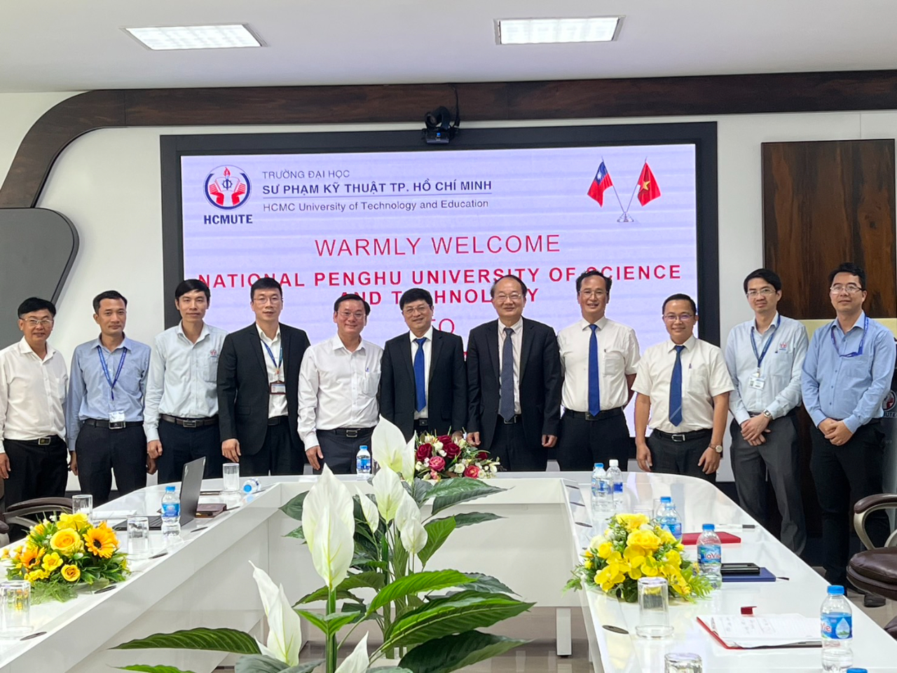 Ngày 4/4/2023 PGS.TS Lê Hiếu Giang (giữa) Phó Hiệu trưởng phụ trách trường Đại học Sư Phạm Kỹ Thuật TPHCM tiếp GS.TS Yo-Ping Huang Hiệu trường trường Đại học Khoa học Kỹ thuật Penghu (Thứ năm từ phải qua) đến làm việc
