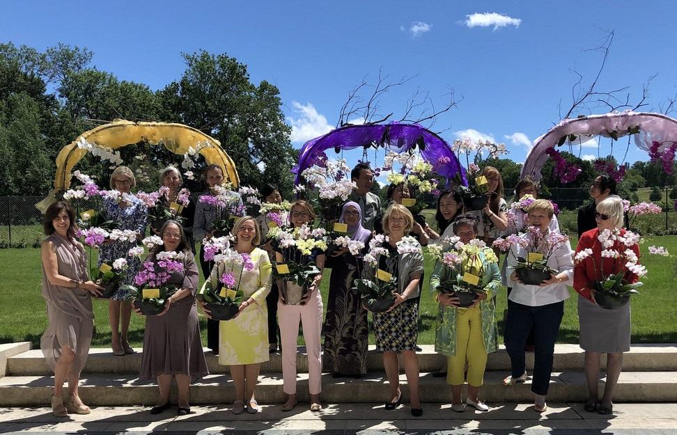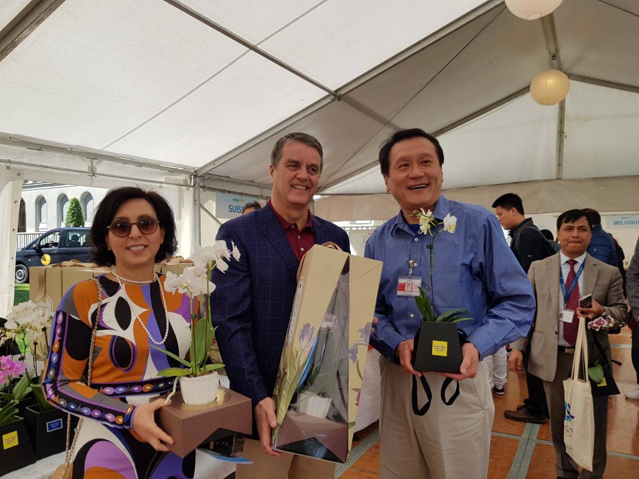 本團於6月13日(星期四)晚間舉辦「台灣蘭花展」開幕酒會,展出逾千株自台灣運抵具我國特色之品種蘭花,向日內瓦外交圈充分展現台灣蝴蝶蘭王國美名。 本年朱大使悉心構思活動亮點,以各色花海交織而成小型世界地圖,搭配色彩凸顯重點國旗顏色,並外聘專業策展人及蘭花協會老師規劃展場花藝搭配,大幅增添本次活動內涵,令出席貴賓耳目一新,紛紛與該國展區合影。 另為充分發揮蘭花外交效益,特於展前舉辦女性貴賓工作坊,邀請友我女性大使及夫人現場體驗組花,與會嘉賓興奮之情溢於言表,過程中充滿歡笑,最後開心地與成品合影並置於展場中央展示。 此外,適逢WTO四年一度之開放日,本團於會場義賣蝴蝶蘭及台糖與故宮合作,以郎世寧畫作包裝之伴手禮,廣受各國工作人員及日內瓦當地居民喜愛,活動未結束即銷售一空。蘭花之美吸引WTO秘書長夫婦駐足欣賞,由夫人親選購多株植栽,其他駐團亦跟進添購佈置攤位,成為當天最耀眼的焦點,成功透過軟實力提昇台灣之國際能見度及當地居民之好感。