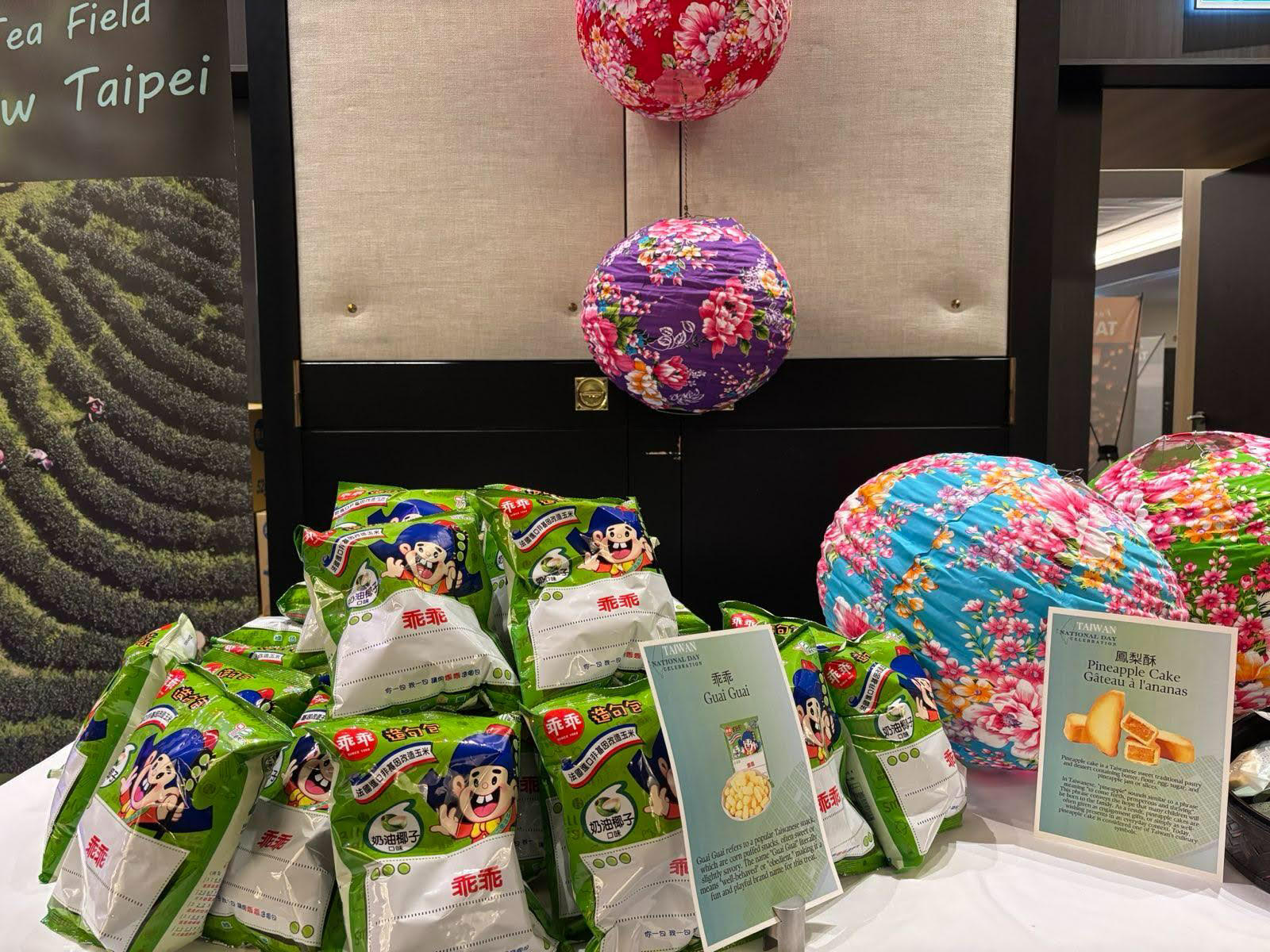 包、蔥油餅、滷味、炒米粉、鳳梨酥及台式麵包等台灣小吃,酒會現場非常溫馨熱鬧。(E)