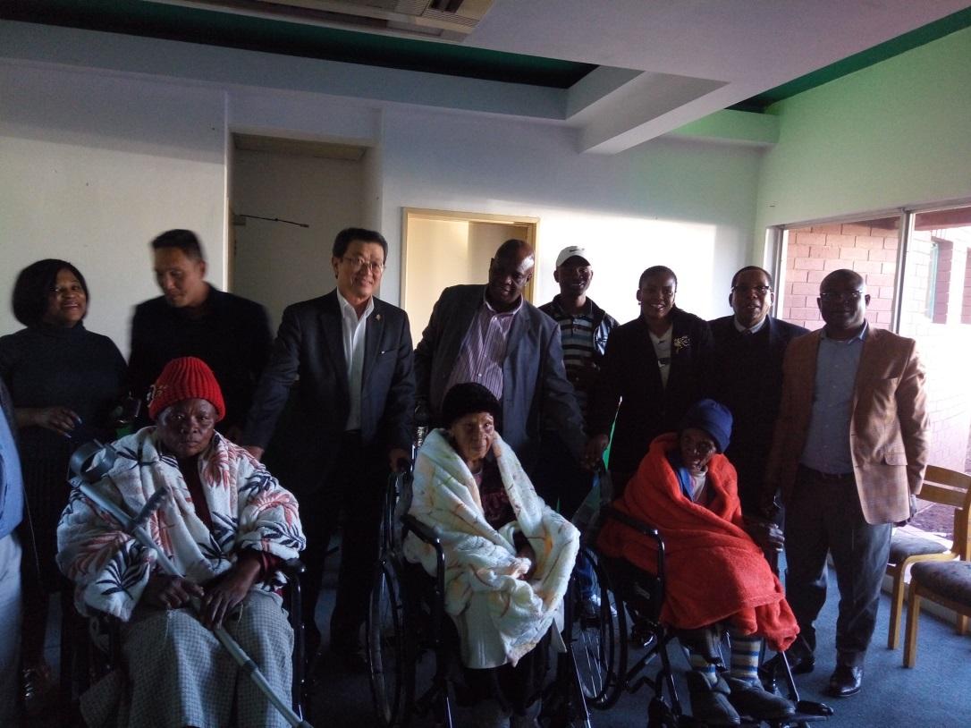 周代表唯中代表中華民國政府在南非8名國會議員及民意代表到場觀禮見證下捐贈印有「Love from Taiwan」之毛毯及輪椅予南非自由省低收入民眾