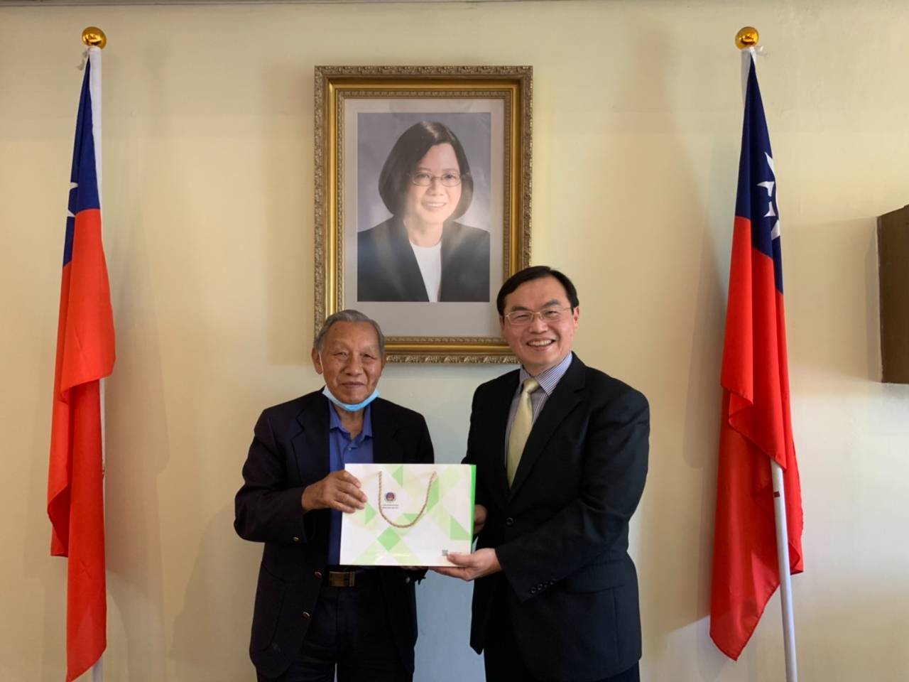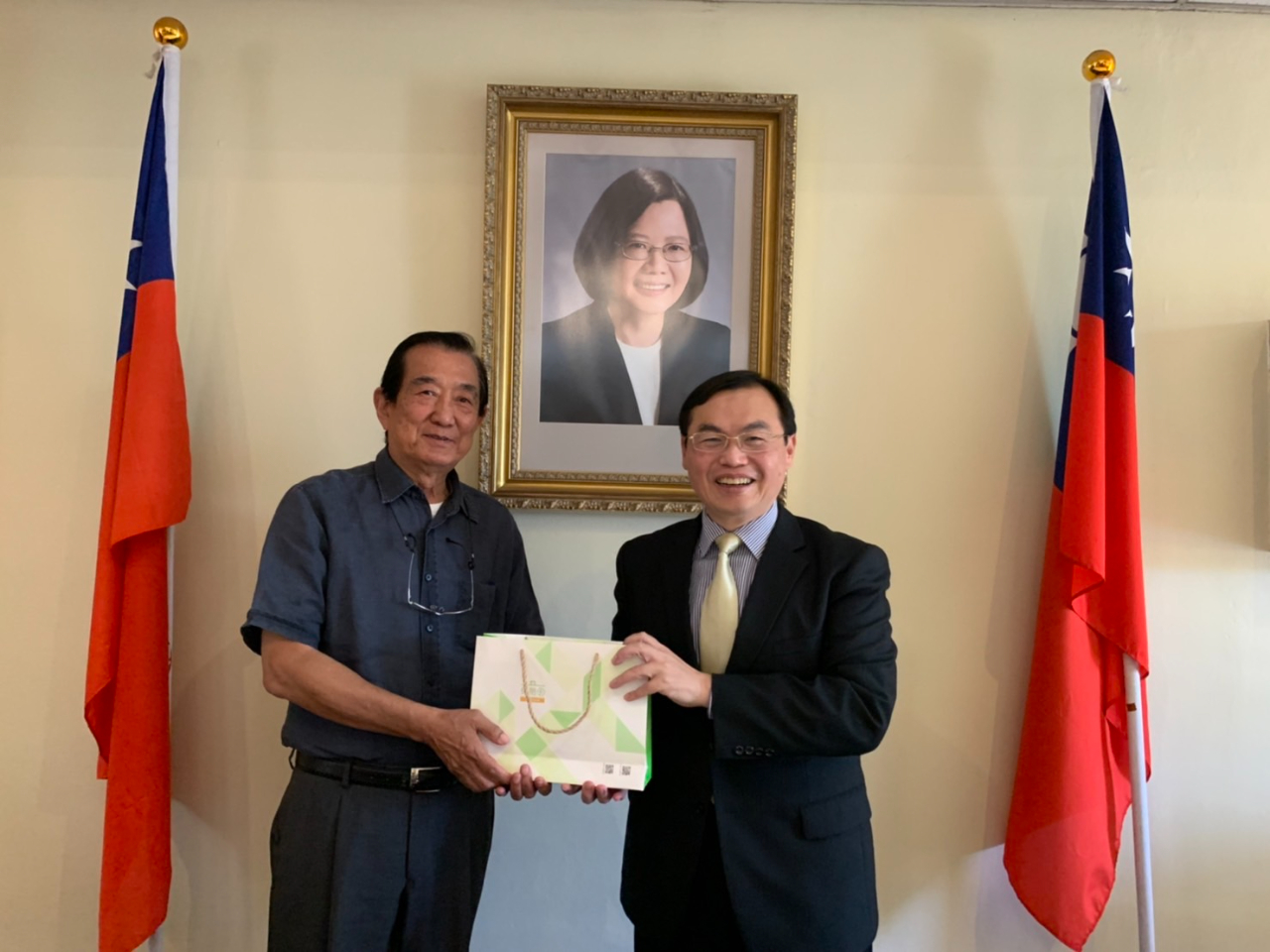 本處賀代表忠義接晤斐京華僑公會劉會長利國及宣理事蓬萊及斐京華僑公學何董事兆昌。賀代表全程以廣東話致詞,首先對劉會長乙行來訪表示誠摯歡迎,肯定斐京華僑公會在劉會長及歷任會長等幹部的努力下,為僑居南非華人的權益所做努力,並對斐京華僑公學推廣華語及中華文化的重要機構的付出貢獻,表示敬佩及感謝。賀代表致詞表示,國父孫中山先生領導的國民革命,111年前創建亞洲第一個自由民主共和國-中華民國。國父革命過程中,海外僑胞貢獻很大,所以「華僑為革命之母」。這麼多年來,經過政府及海內外國人共同努力,中華民國已是一個完全自由民主經濟繁榮的國家。賀代表強調,中華民國一直堅持國父的自由民主博愛的理念,尤其過去幾年來,在蔡總統的領導下,我們堅持自由民主的決心,不因為任何挑戰和壓力而改變。我們在許多議題上,也積極協助世界上需要幫助的朋友,因此國父的理想今日在台灣完全的落實。賀代表期許世界各地認同自由民主的好朋友繼續一起合作,也期待斐京華僑公會以及斐京華僑公學的各位先進,繼續支持中華民國、支持台灣。今年是中華民國111年,祝福也有三個一,「一心一德,一定成功」。相信大家共同合作,為推動民主、自由、繁榮及博愛而努力。賀代表也代表僑務委員會童委員長振源,致頒僑務顧問證書予何僑務顧問兆昌;並邀貴賓及與會同仁合影。