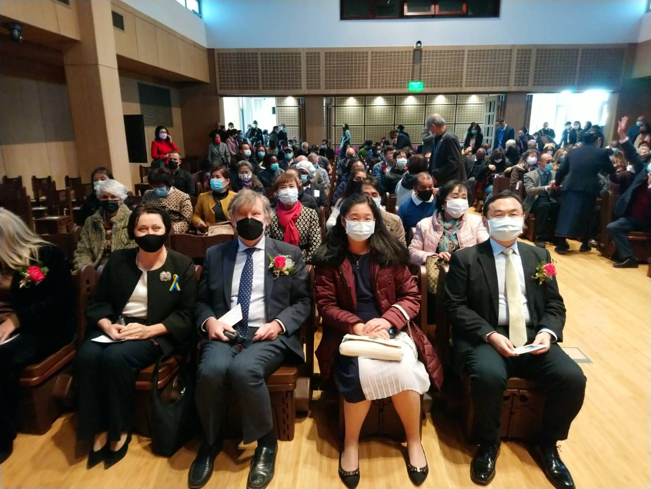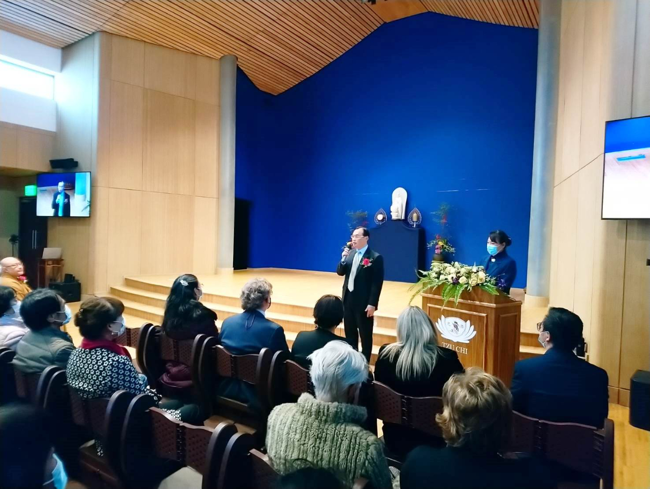 賀代表忠義夫婦應慈濟基金會南非分會邀請,於6月19日赴約堡地區福德維尤區(Bedfordview)出席慈濟在非洲大陸第一座會堂—南非靜思堂落成啟用典禮。立法院溫立法委員玉霞及吳前立法委員松柏等此間僑領,靜思堂所在都市Ekurhuleni市市長Tania Campbell,以及立陶宛駐斐大使Dainius Junevičius夫婦均應邀出席。賀代表與出席貴賓共同進行剪綵,為靜思堂揭牌,象徵靜思堂正式啟用。