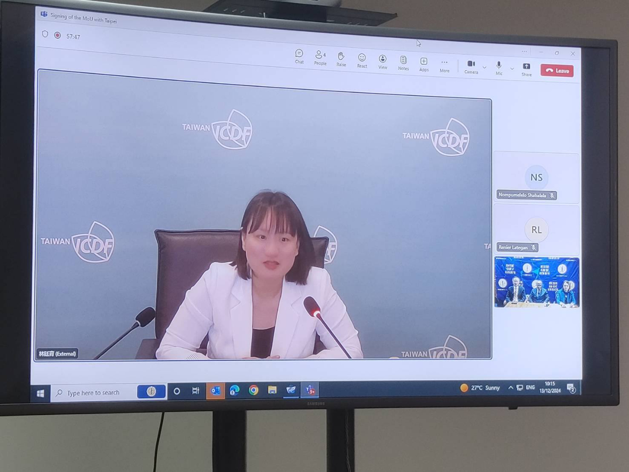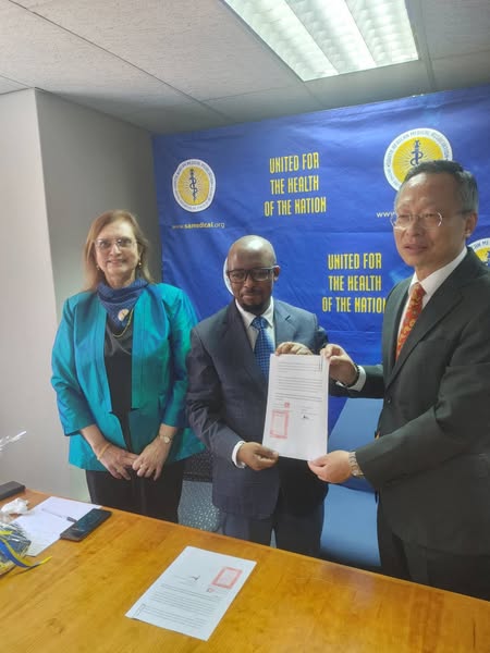 廖文哲代表偕同仁於12月13日在「南非醫療協會」(SAMA)總部見證該會主席 Dr. Mvuyisi Mzukwa 與「國際合作發展基金會」(ICDF) 秘書長黃玉霖簽署醫療合作備忘錄。SAMA副主席 Professor Ms. Ames Dhai 及執行長 Dr. Mzulungile Nodikida 等應邀觀禮,ICDF副秘書長謝佩芬則在台北遠端視訊見證。Nodikida執行長曾於今年6月赴台參加ICDF研習班,居間促成備忘錄簽署,雙方醫療教育合作指日可待。SAMA見證LIAO SAMA見證HSIEH